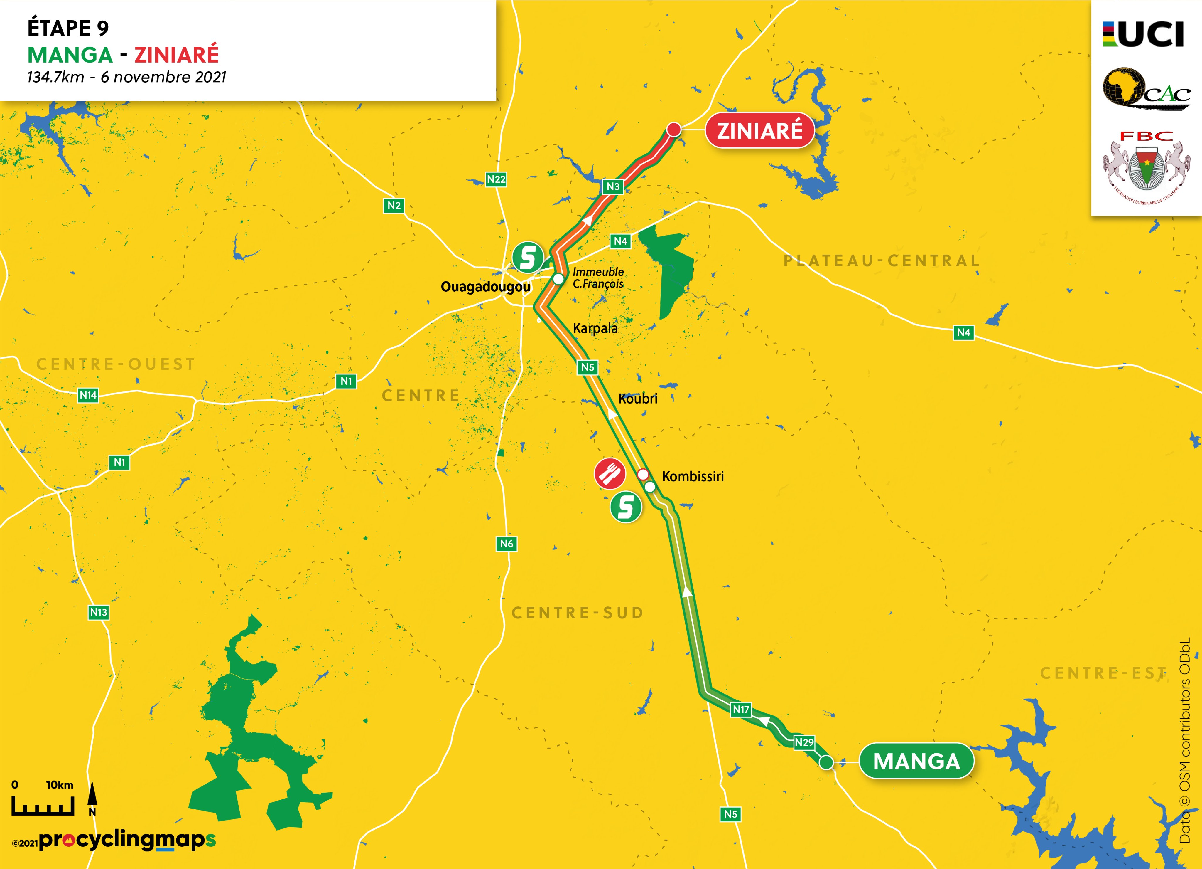 La première étape de l’édition 2021 du #TourDuFaso, longue de 128, 7 km, partira de Banfora plus précisément de la porte d’entrée du stade régional à 8h 30. L’arrivée sera jugée sur le boulevard de la Révolution à l’issue du 4e tour d’un circuit de 10, 8 km. Il est prévu au total 2 sprints intermédiaires à Toussiana (29, 3 km) et Péni (53, 5 km). Le ravitaillement des équipes débutera à Noumoudara au kilomètre 60.